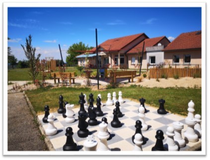 Ce jardin est aménagé d’un damier, d’instruments de musique, d’un coin détente et d’un chemin accessible en tricycle.