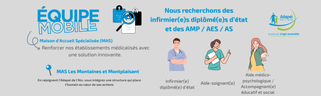Retrouver les offres de postes de l’ADAPEI 01 pour son équipe mobile.